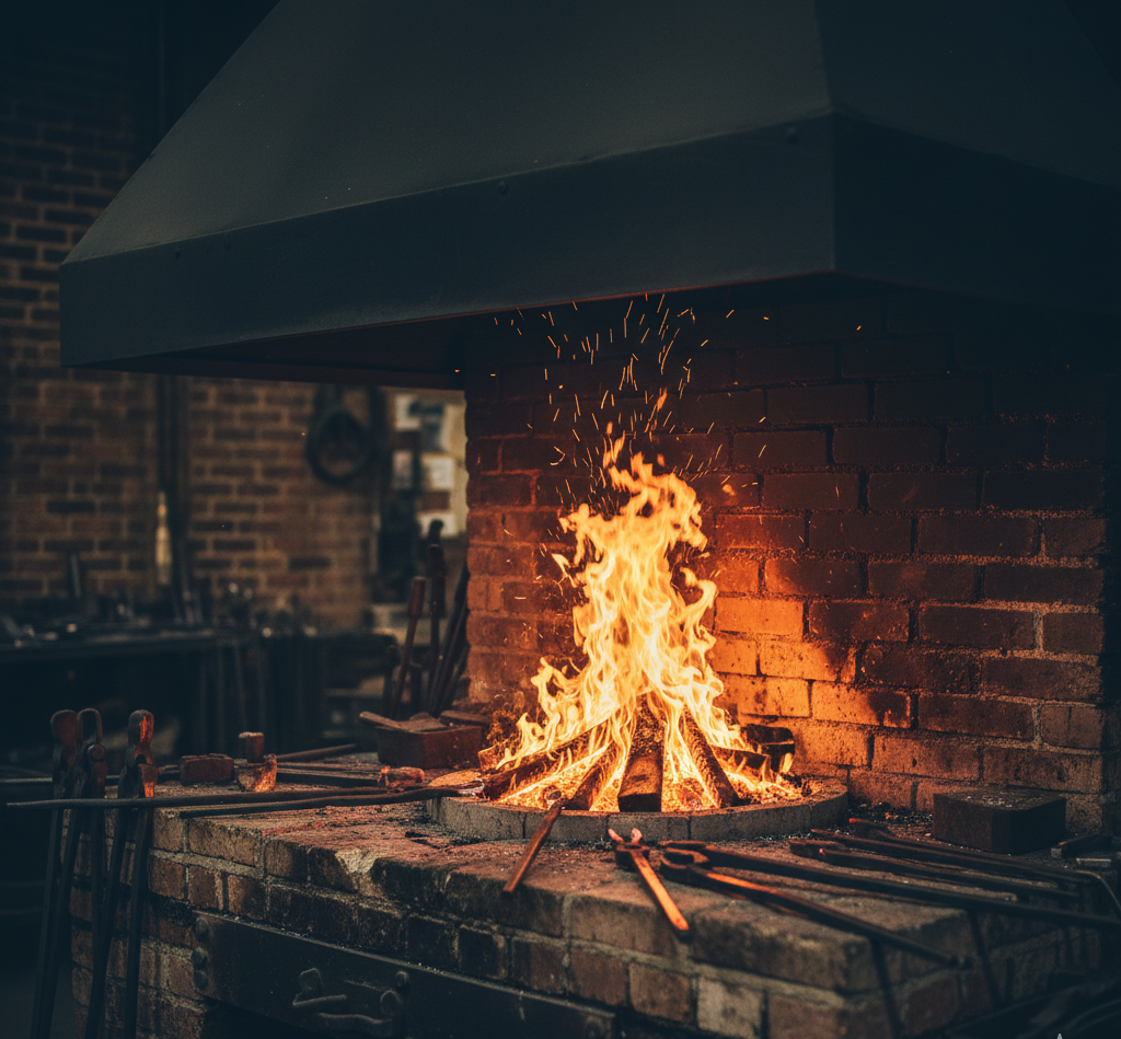 Donde todo comienza. El calor extremo de nuestra fragua ablanda el hierro, preparándolo para ser transformado por manos expertas.